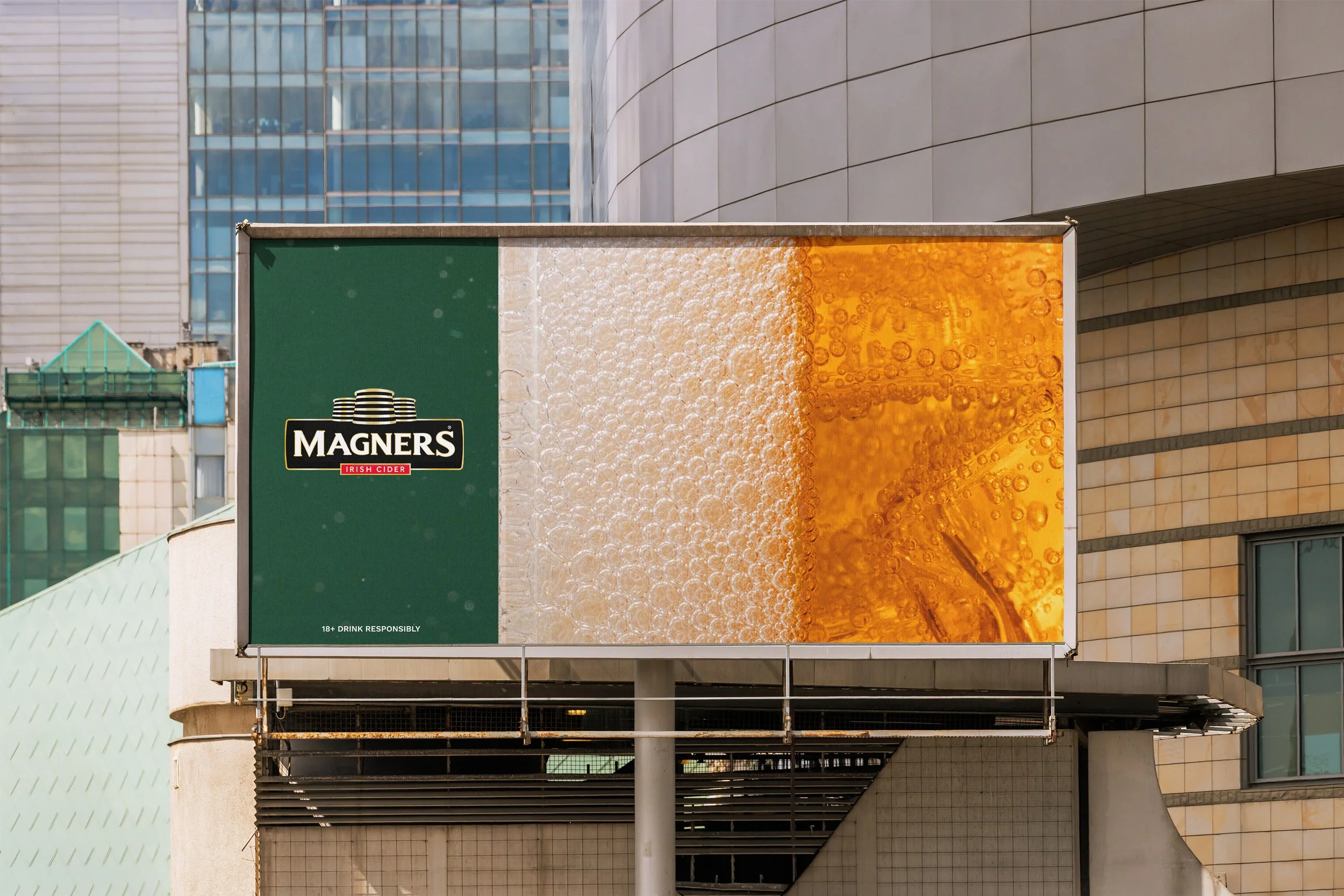 To get everyone reaching for a Magners on St Patrick’s Day, the Irish Cider brand has released a series OOH that at thirst glance looks like the iconic Irish flag, however, a second take reveals beautiful macro photography of a freshly poured pint of Magners over ice. Because St Paddy’s falls on a Tuesday this year, the brand wanted to give people a reason to put work on ice and go out and celebrate with Magners. The ads are running across Australia in OOH, DOOH and across Social Channels in the week leading up to St Patrick’s Day. Localized and contextual messaging will be revealed on the day. Developed in-house by me and my team at Good Drinks Australia.